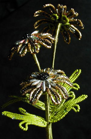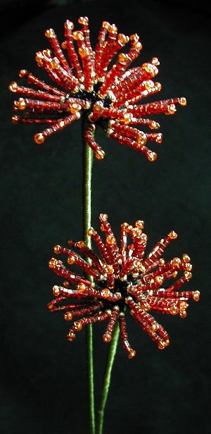 | Dagger Daisies | Dandelion Puffs, an original design in non-traditional colors. I have been told recently that this resembles Catclaw Sensitive Brier. |