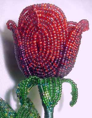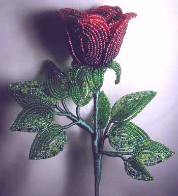 The French Beaded Flowers are made of tiny glass beads which reflect/show differently under various lighting conditions.